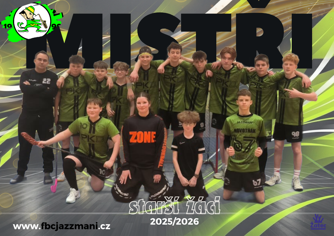 Sobota 11. dubna 2026 se zapíše do klubové historie. Starší žáci FbC Jazzmani Žatec zvládli poslední dvě utkání sezóny na výbornou, zapsali dvě přesvědčivé výhry a po zásluze se stávají šampiony Přeboru starších žáků – skupiny 2. Tým zakončil sezonu ve velkém stylu a konečná...